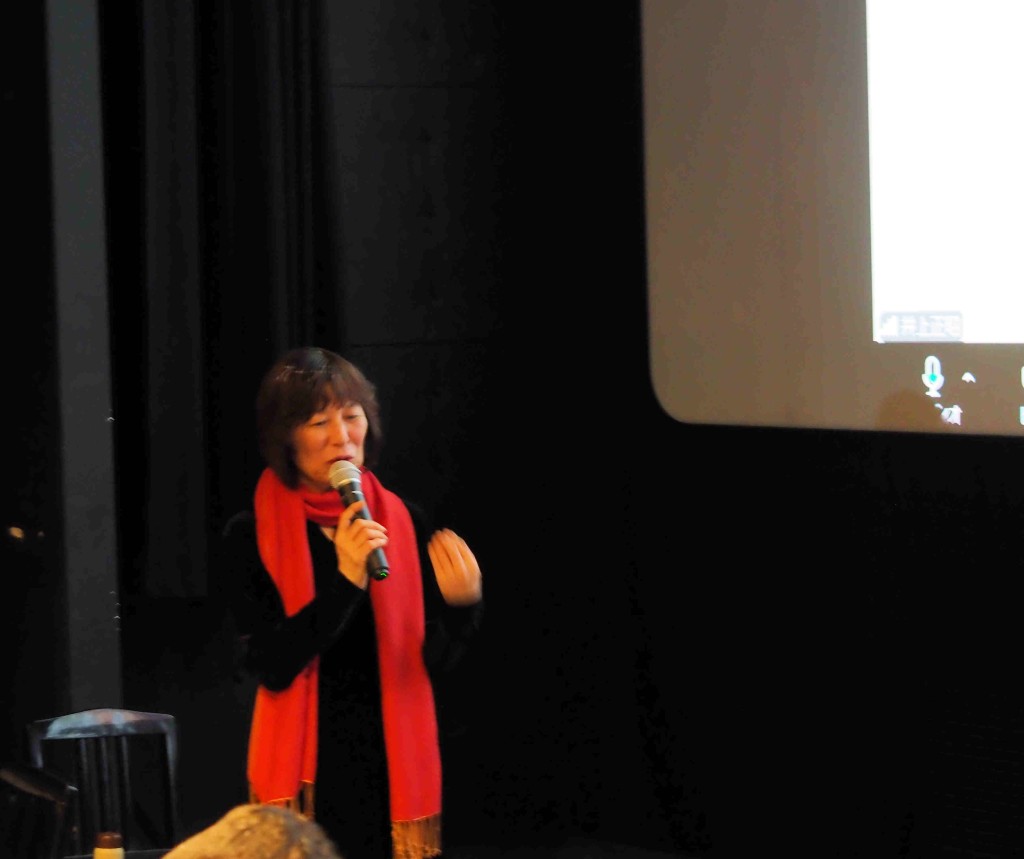 神戸映画資料館でもう何年も講演をされている井上さんだが、ズームを使うのも、オンライントークも初めてのこと。「すごい、自分の顔がこういう大きなクローズアップで。こんな日が来るとは思わなかった」というところから始まり、観客の心を和ませ、話はそのままグリフィス監督の特徴的な演出クローズアップへと入っていった。