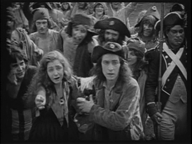 ただ、この映画にフランス革命をグリフィスが盛り込んだということを、どういう風に考えるかということなのですが、グリフィスというのは、こういう歴史大作を撮っても、結局はメロドラマになるわけですね。終わりはいつも決まってラスト・ミニッツ・レスキューです。危機に瀕した登場人物を、遠くから誰かが救いに来る。それを、交互に映し出しながら見せていくというお得意のクライマックスですね。代表的なのは『国民の創生』と『イントレランス』の現代編とかですが、それ以前の短篇の時代から、そういう映画の作り方をずっとやってきています。なので『嵐の孤児』でも、最後のクライマックスを盛り上げるための背景としてフランス革命を使っているだけで、あまり真剣に考えることもないのではないかという見方もできるし、それも正しいと思うのです。